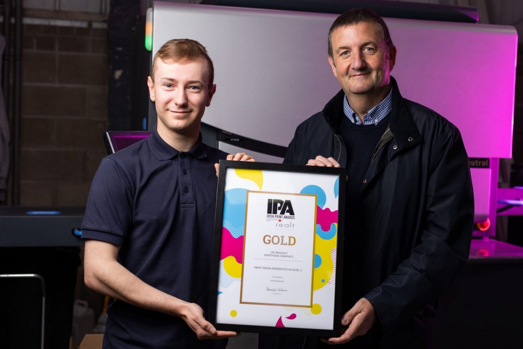 We are delighted announce that the first apprentice recruited to our Training Academy, 19-year-old Lee Bradley, was named ‘Print Media Apprentice of the Year’ at the recent 43rd Irish Print Awards in Dublin – attended by over 500 professionals from across the print and press sector.