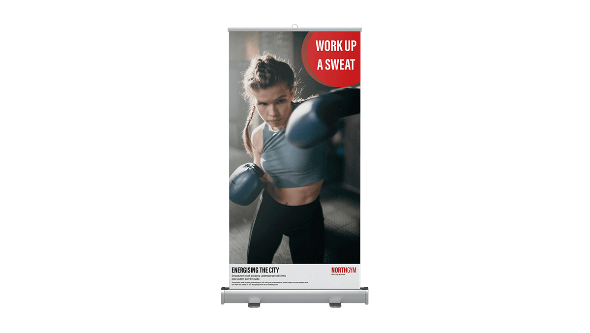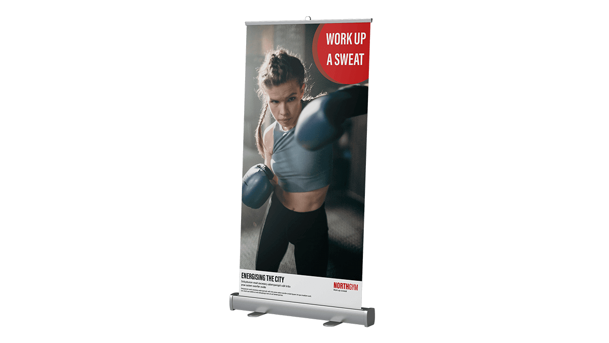 The Gold roll-up 1000mm stand weighs less than 6Kg including the printed graphic and stands at 2000mm tall when fully erect. It also comes in widths of 800mm, 1200mm and 1500mm.