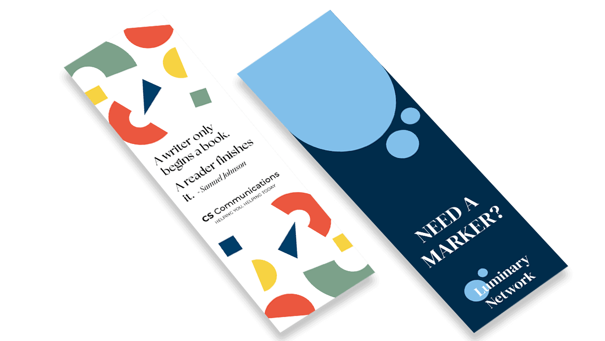 We are able to create custom bookmarks with striking colours, easy to read text and high-resolution imagery thanks to our HP Indigo Presses. We also offer a lamination service for your printed bookmarks. If you’re looking for that extra special professional edge, lamination is an effective method of adding to the overall quality of your printed bookmarks while providing a protective layer.