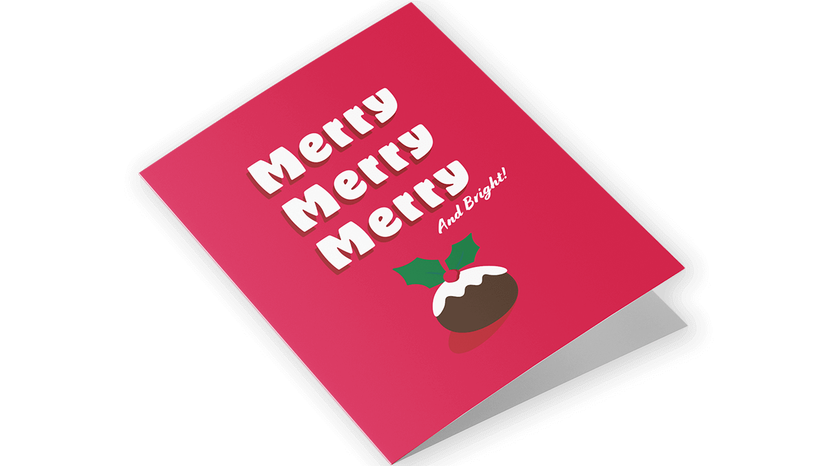 Half-fold: Ideal for a Christmas card with a central festive design and sentiment stacked above or below. The half-fold, also known as the portrait-fold, is a greetings card where the fold runs along the side-edge, with its height longer than its width.