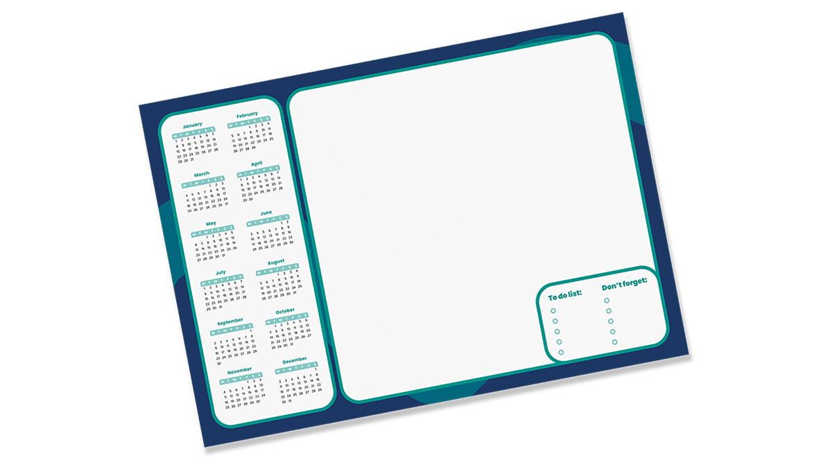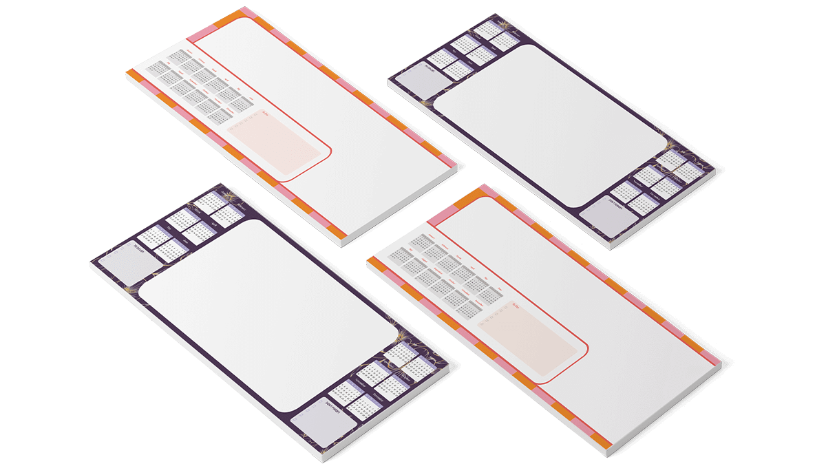 Desk Pad Calendars are a perfect solution to being more organised in 2025, keeping one of these on your desk makes it easy to jot down schedules, to-do lists, and all kinds of notes. You can simply upload your artwork or use one of our Desk Pad Calendar templates with dates already filled in just add your design to it, each pad contains 50 pages glued together and separated with a grey backing board making it easier for the sheets to be torn off once you are finished. Only one piece of artwork is needed and we will print every page in your notepad with the same artwork.