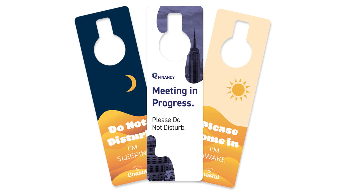 - Our door hangers come in two convenient styles to accommodate various door types - Hook and Circle options available.