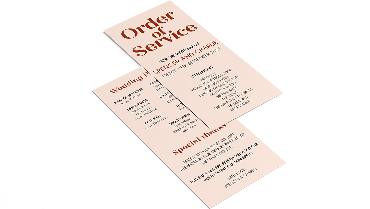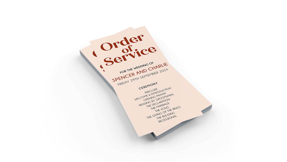 Trade customers can customise their flat order of service documents to their exact liking. We offer a selection of luxury papers, professional finishes and the ability to upload original artwork.