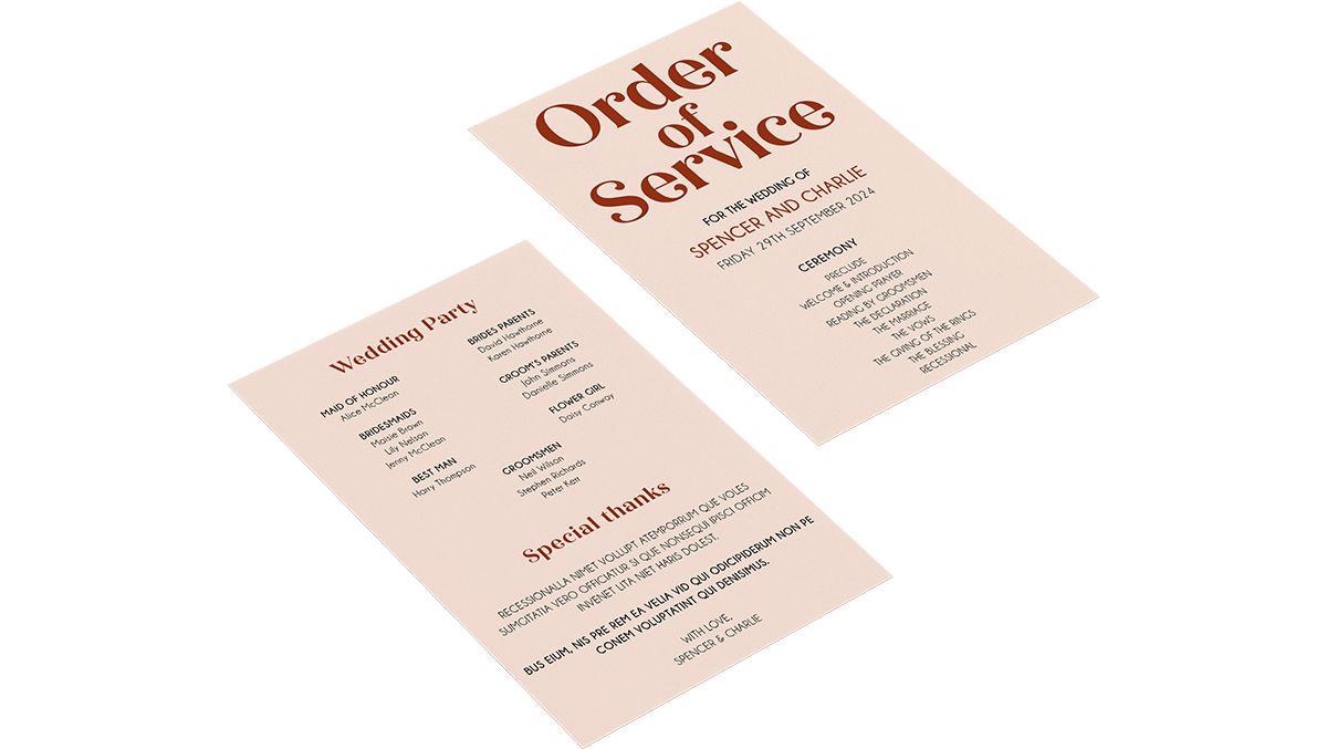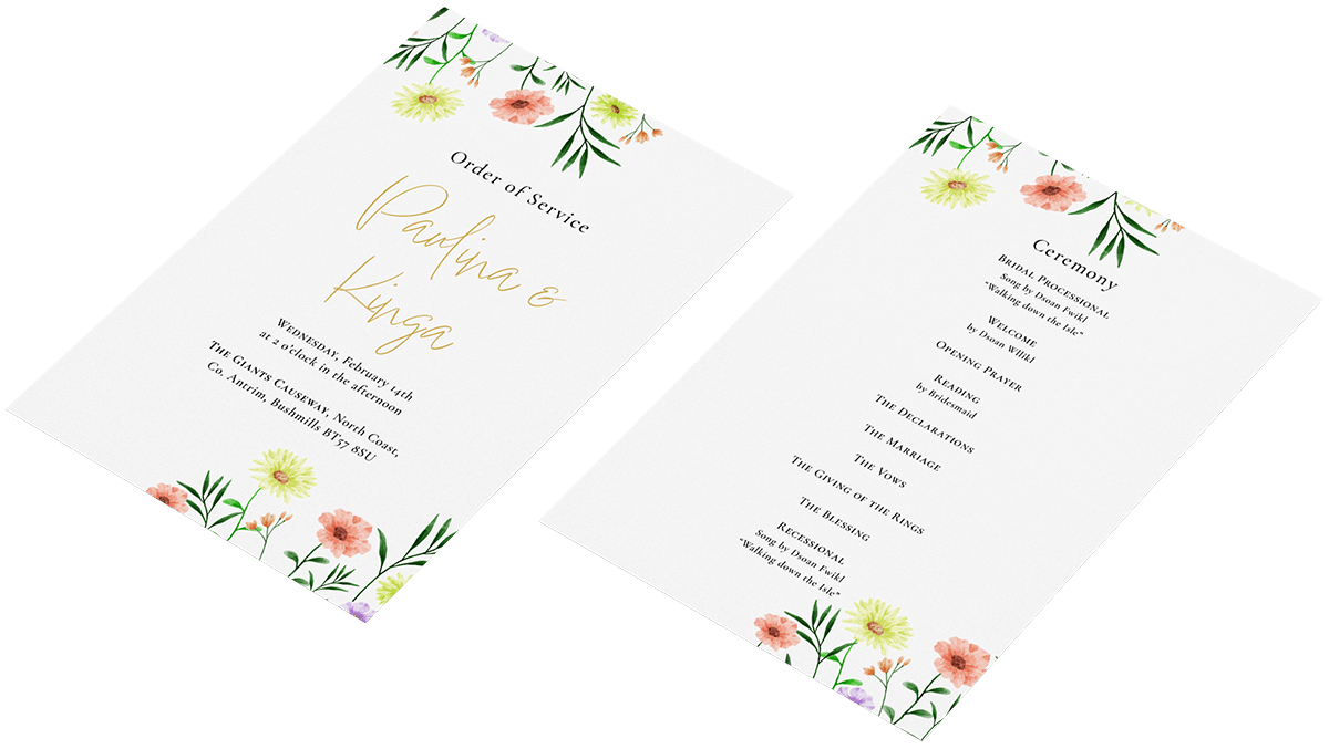 Flat Order of Service documents help your customers guide their guests through their special day.