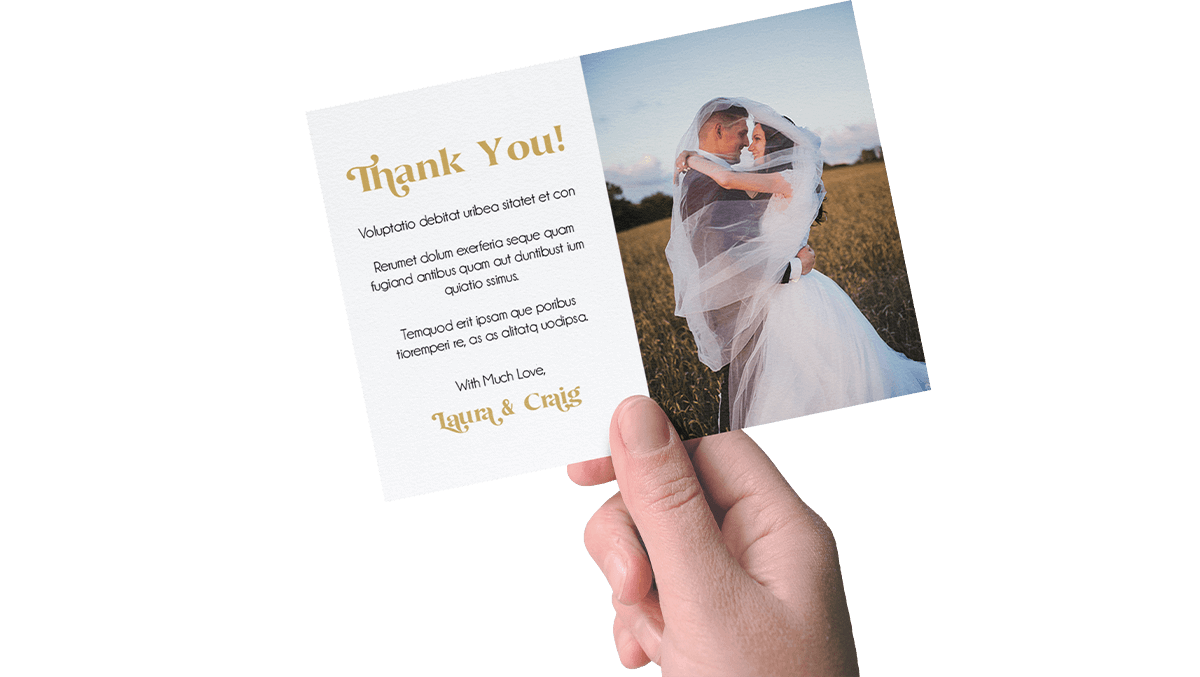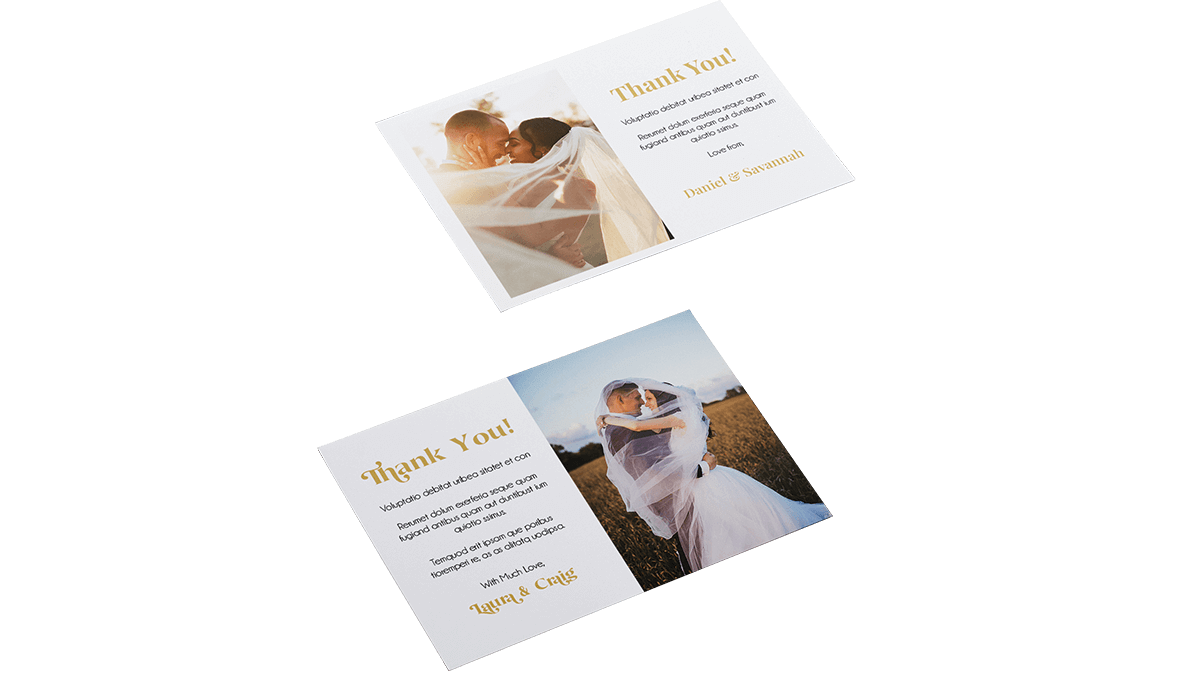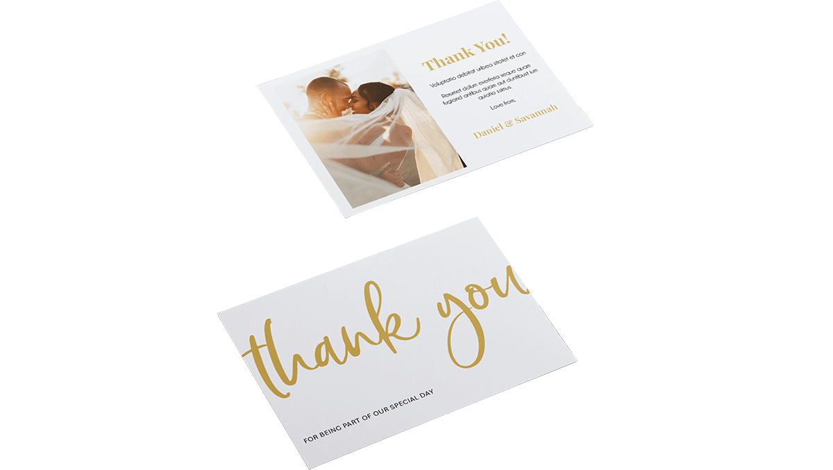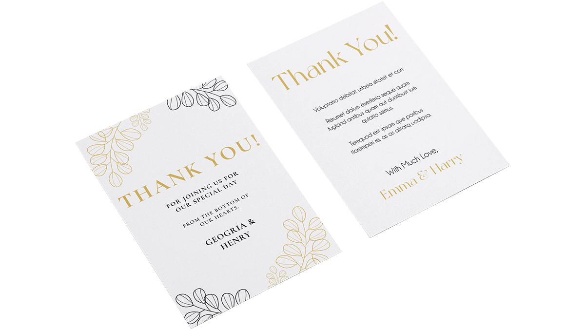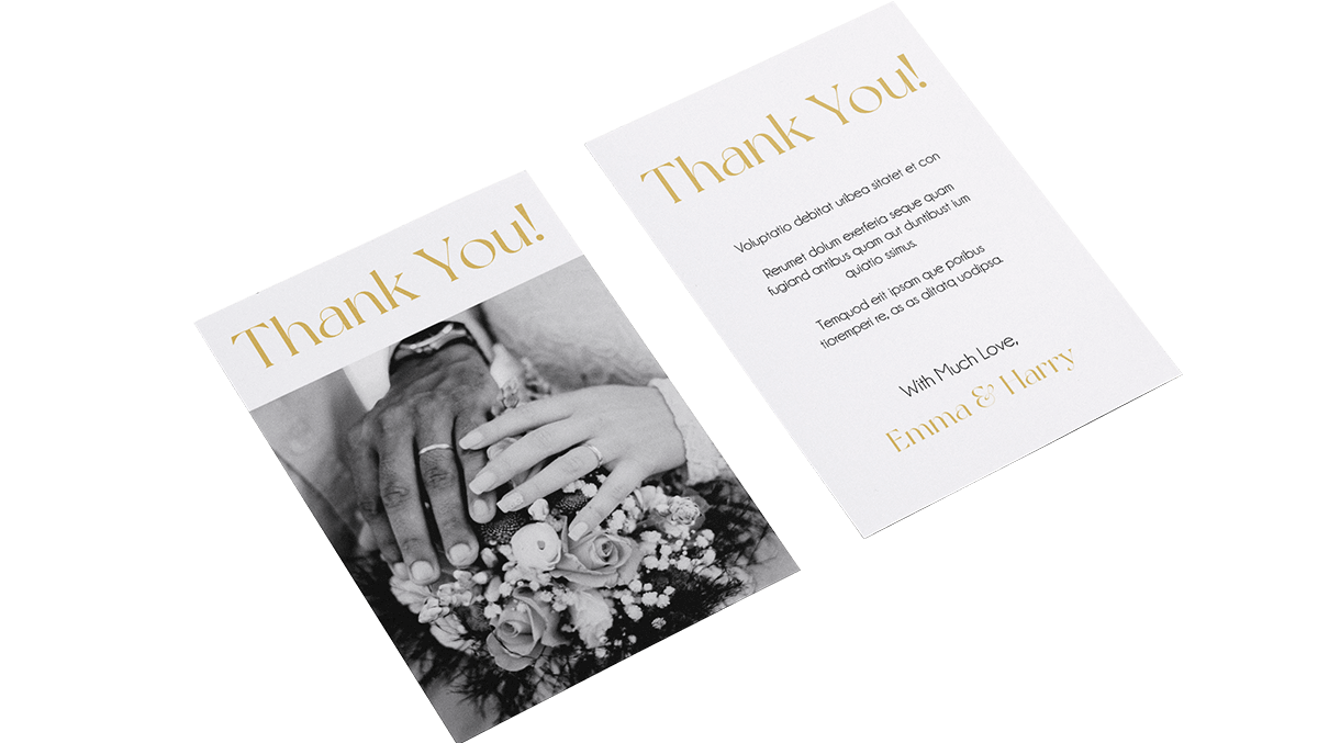 Grant your customers the chance to show appreciation to their guests for being a part of their special day. Our beautifully designed, customisable flat thank you cards will leave a lasting impression on your customers and their friends and family.