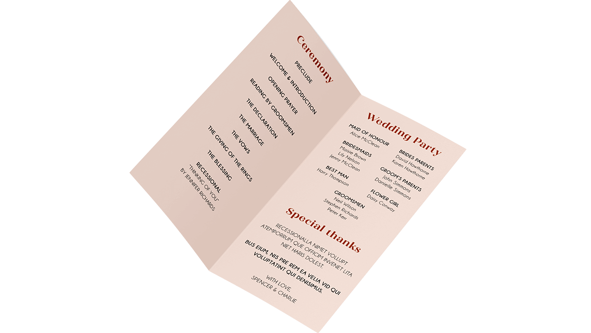 Let your customers provide beautifully designed folded order of service documents on their wedding day.