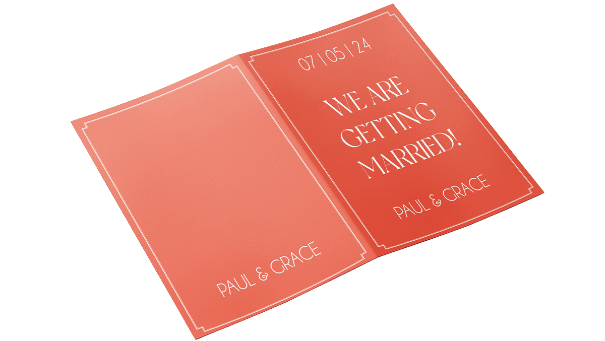 A beautifully designed folded save the date card will ensure your customer’s wedding date stays at the forefront of their guests’ minds. Order our folded save the date cards at TradeDigitalPrint.ie. We promise fast turnaround and delivery times to Dublin and beyond. You can count on us to deliver folded save the dates on time to anywhere in Ireland.