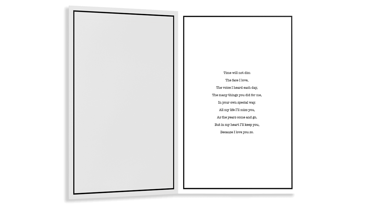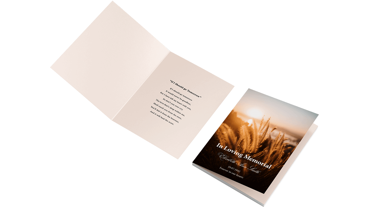Premium memorial cards, printed with care. You can upload or email your artwork at the end of the quote process. Our top of the range HP Indigo presses ensure high-resolution imagery, distinctive colours and text that is easy to read, which will add to the overall professionalism of these memorial cards.