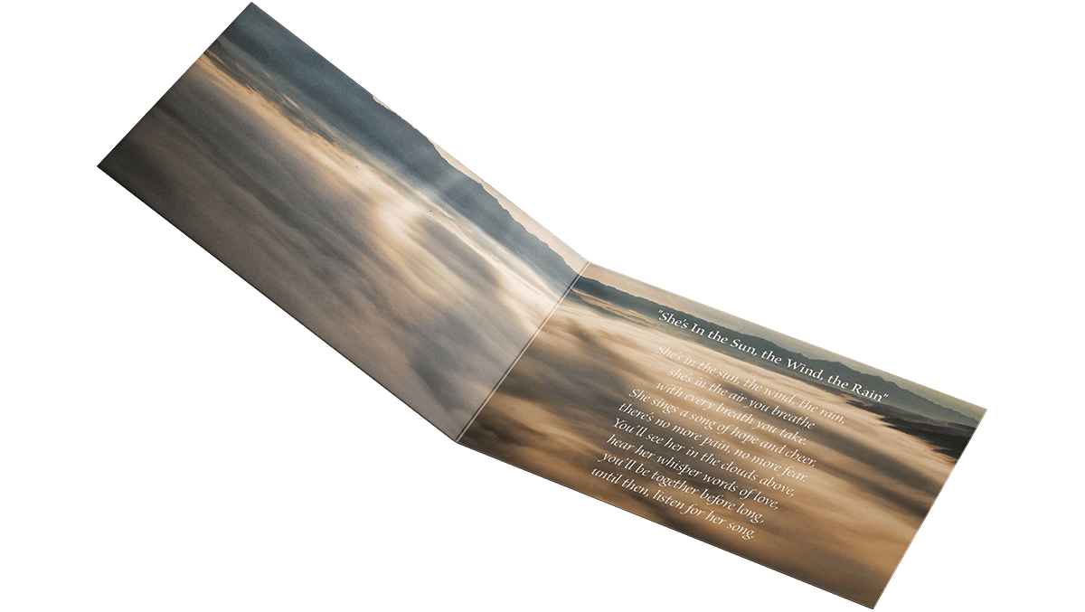 We print premium memorial cards and offer various sizes, paper weights and finishes. Our top of the range HP Indigo presses ensure high-resolution imagery, distinctive colours and text that is easy to read, which will add to the overall professionalism of the memorial cards.