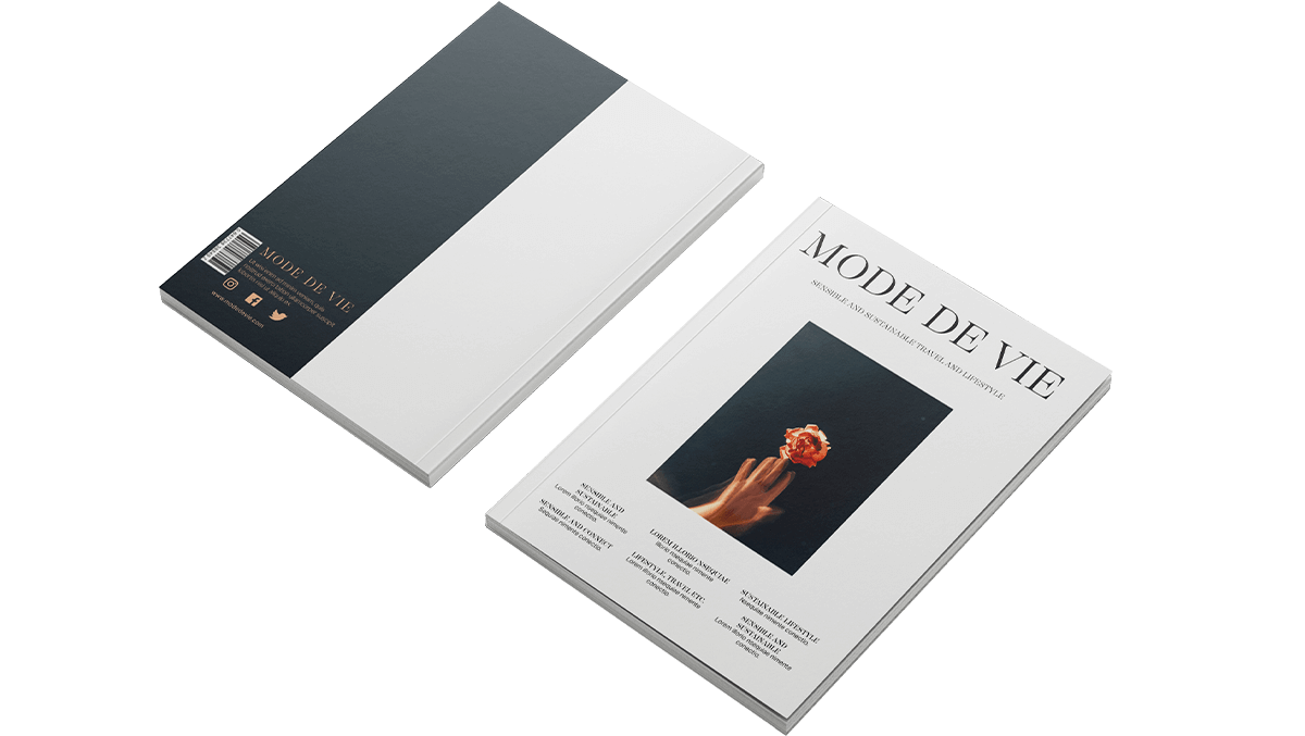 Our premium uncoated paper is absorbent. Printed inks appear flatter due to this absorbency, and the paper has a soft finish. A recycled option is available. (Cover 250gsm – 300gsm; inner text 100gsm – 120gsm)