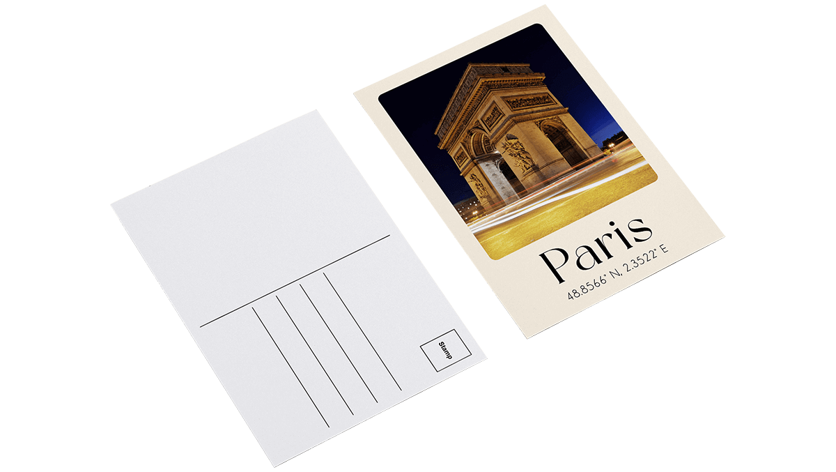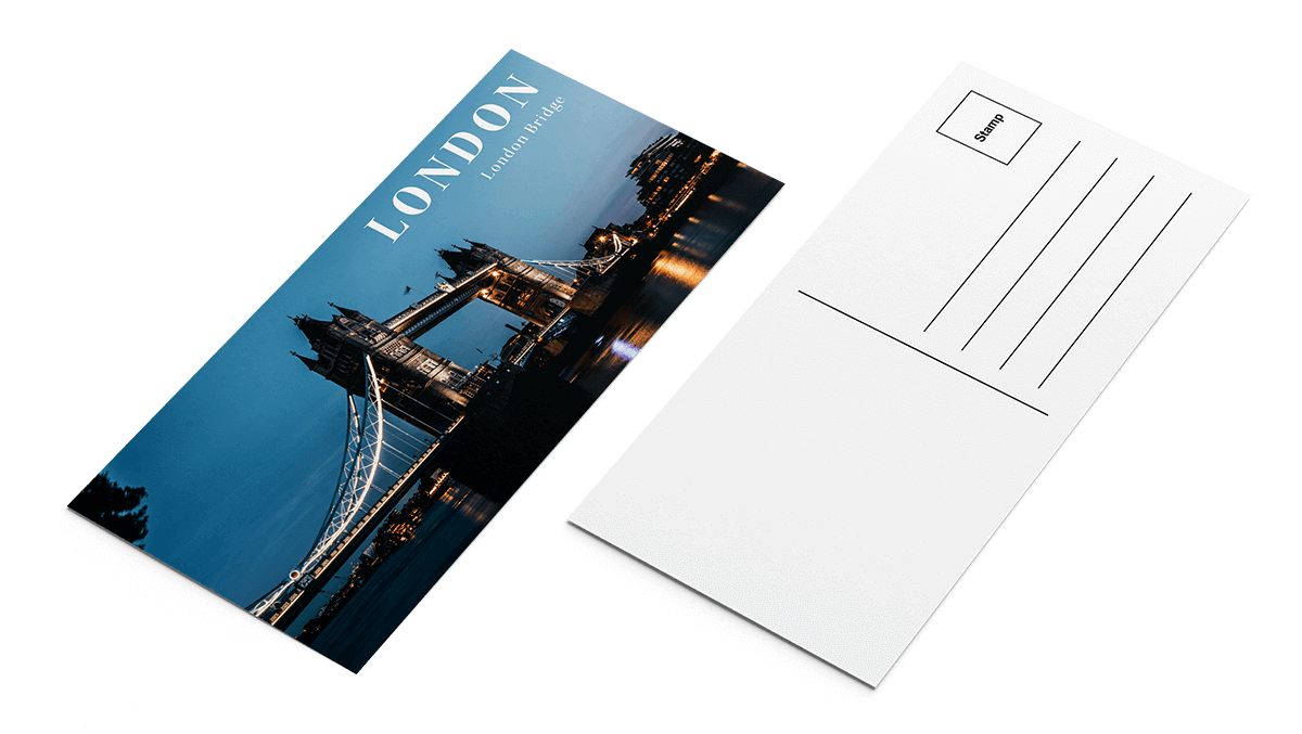 A specialist postcard material that is coated and scratchproof on the outside, and uncoated inside so it's easy to write on. We use heavy 280gsm card for high-quality postcards that last in either matt or gloss finish.