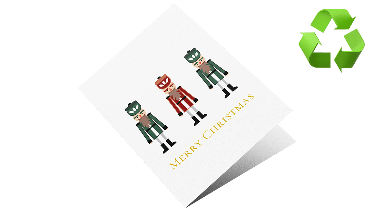 Our best-selling Christmas Card is A5 folded to A6, printed on 350gsm recycled silk.