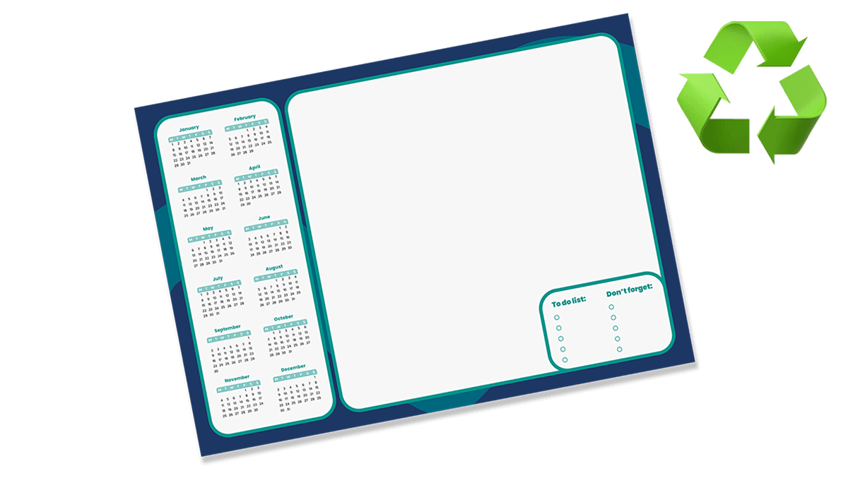 Desk Planners are a perfect solution to staying organised in 2025, keeping one of these on your desk makes it easy to jot down schedules, to-do lists, and all kinds of notes. You can simply upload your artwork or use one of our Desk Planner templates with dates already filled in, just add your logo or corporate colour to it. The A3 pads contain 25 pages, A4 and 420mm x 148mm pads contain 50 pages glued together and separated with a grey backing board making it easier for the sheets to be torn off once you are finished.