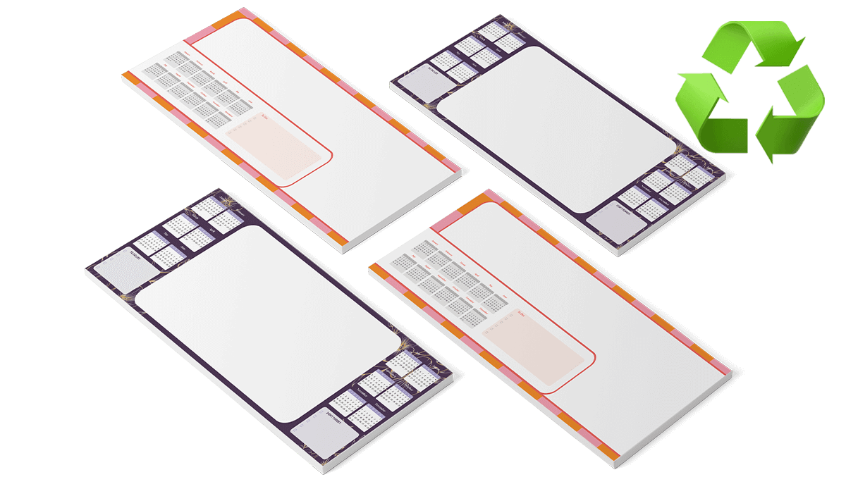 Our HP Indigo digital printing process ensures rich, distinctive colours to ensure you stand out from the crowd. Use our easy online ordering process now to choose the size you need from A4, A3 & 420mm x 148mm. These can be printed on uncoated or recycled unocated paper making it easy to write on.