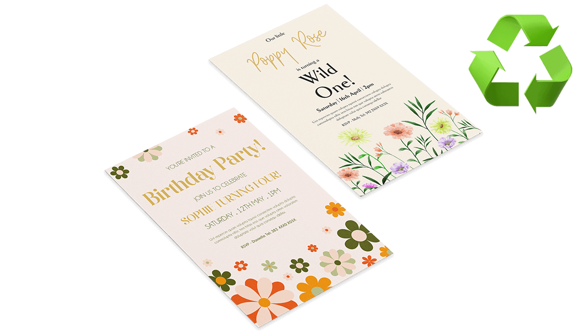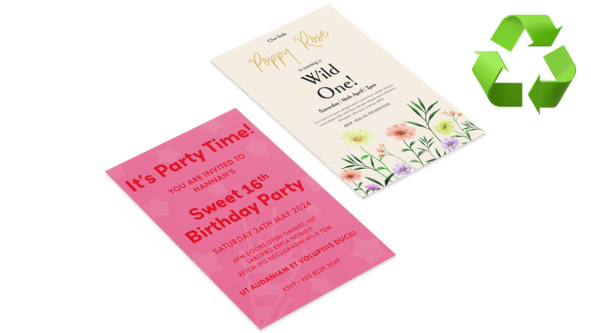 Use Trade Digital Print for high quality invitation printing solutions. Print your invitations on our recycled silk or uncoated papers. We stock recycled silk and recycled uncoated paper for those who wish to choose an environmentally friendly option.