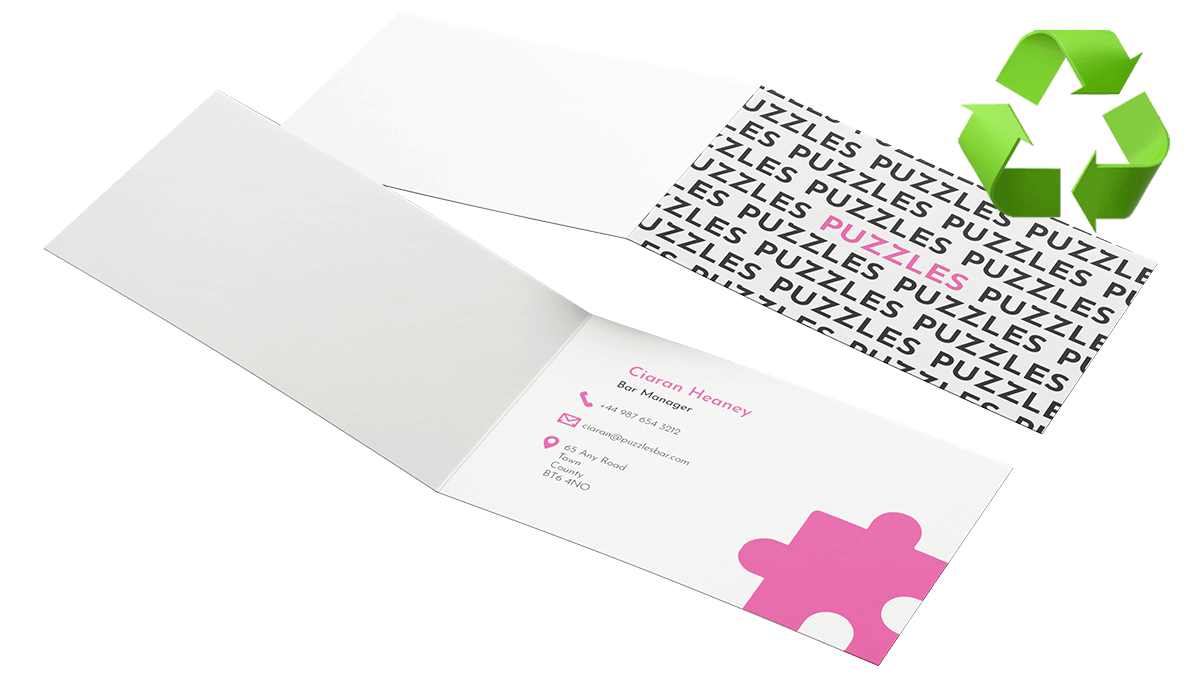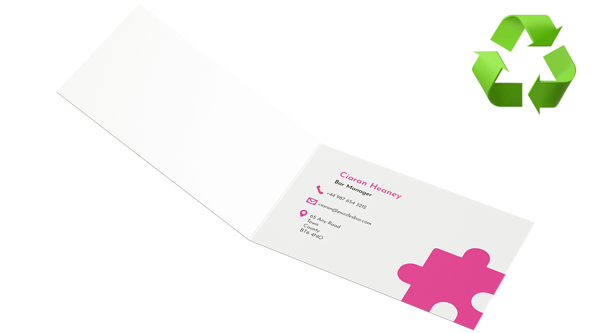 - Our best selling folded business cards are on 350gsm recycled uncoated stock with no lamination.