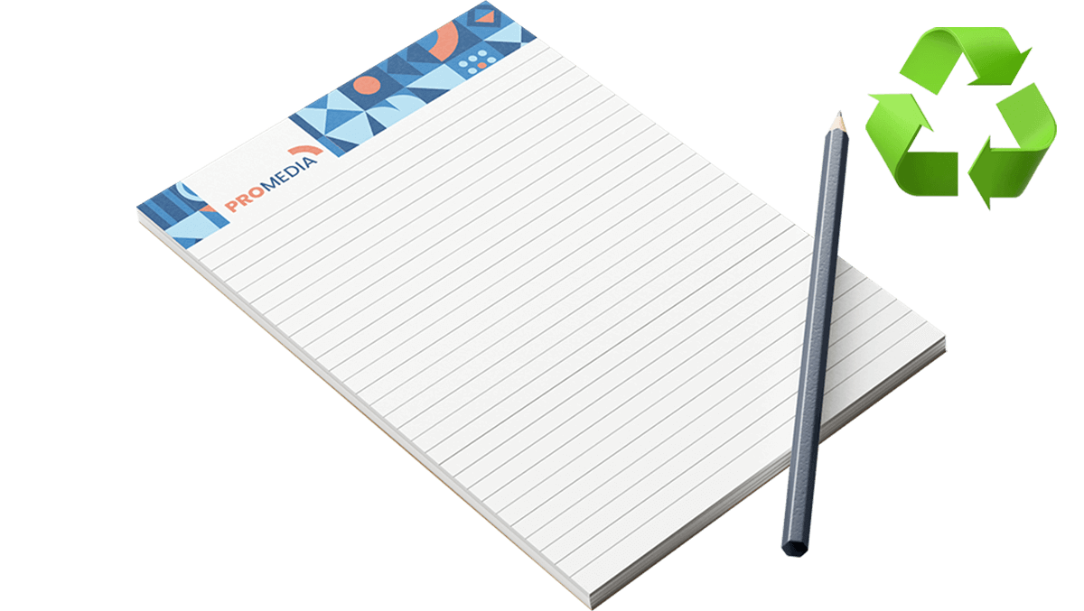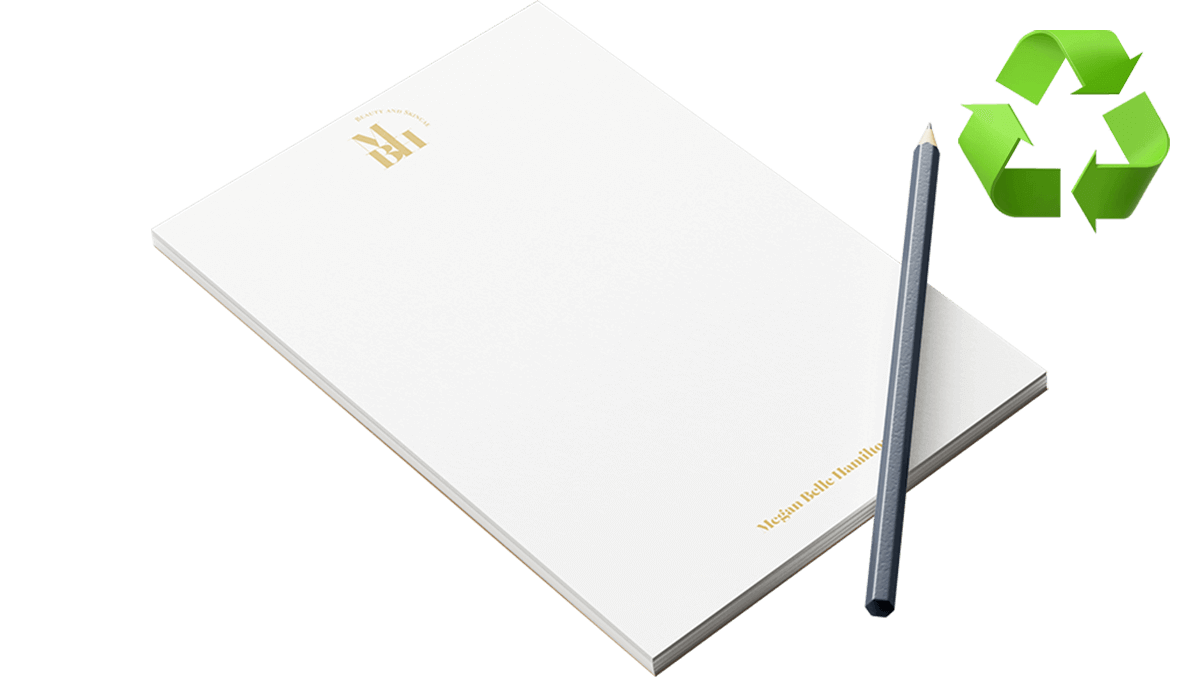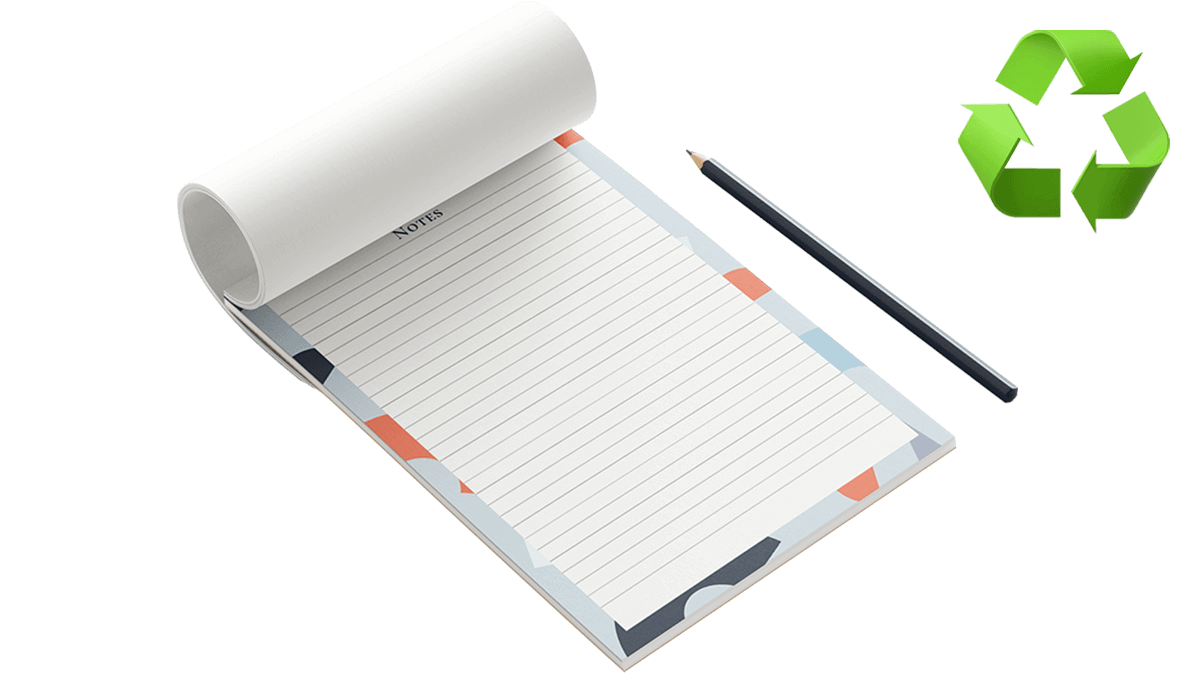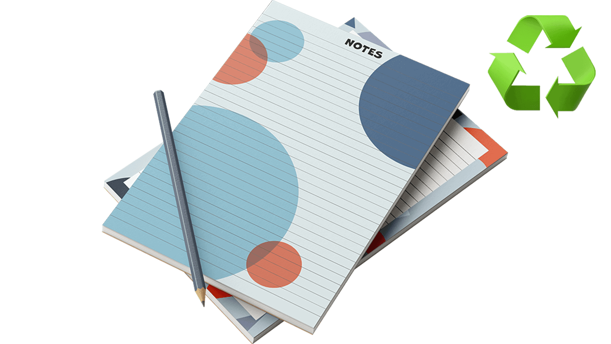 Your design will be printed, separated with the grey backing board and then glued along the top (short edge) of the sheet. This is a tried and tested technique using our industry-standard glue that is very popular. Each glued pad is made from either 25 or 50 copies of your supplied design and is printed single-sided only. Remember, if you want ruled lines on your printed page make sure you include them in your artwork as we print exactly what you supply. Use our easy online ordering process now to choose the size and finish you need from A6, A5, A4 or A3.