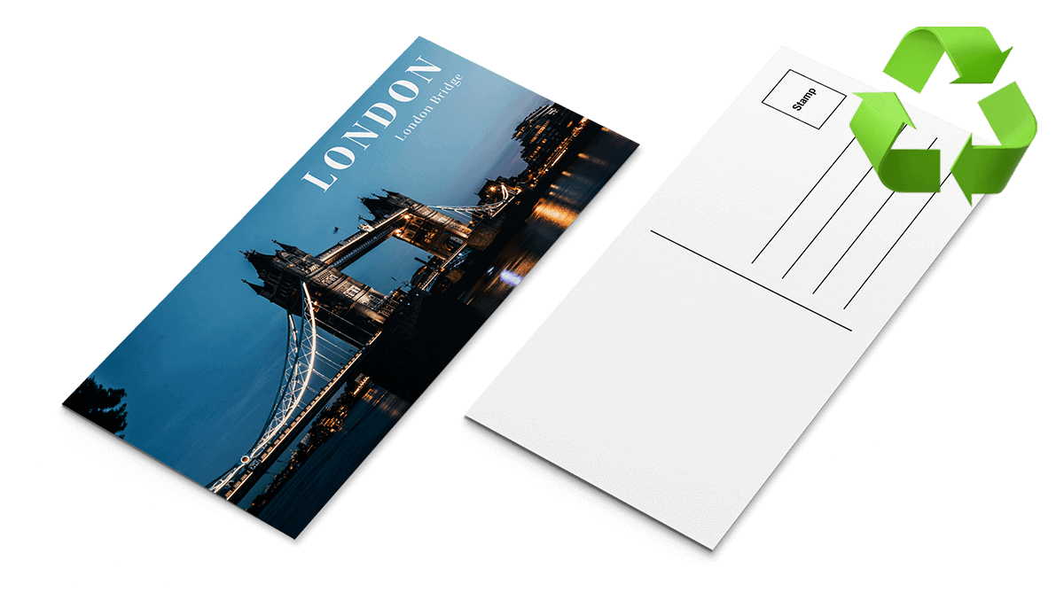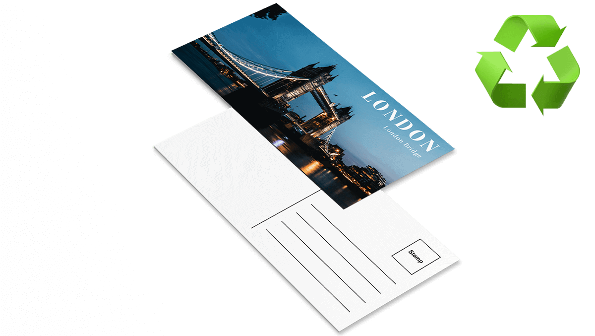 Get creative with high quality postcard printing on recycled papers. Your personality can shine through with personally designed postcards. These are great promotional items for business, notifying clients of upcoming attractions or for personal use as invitations or announcements.