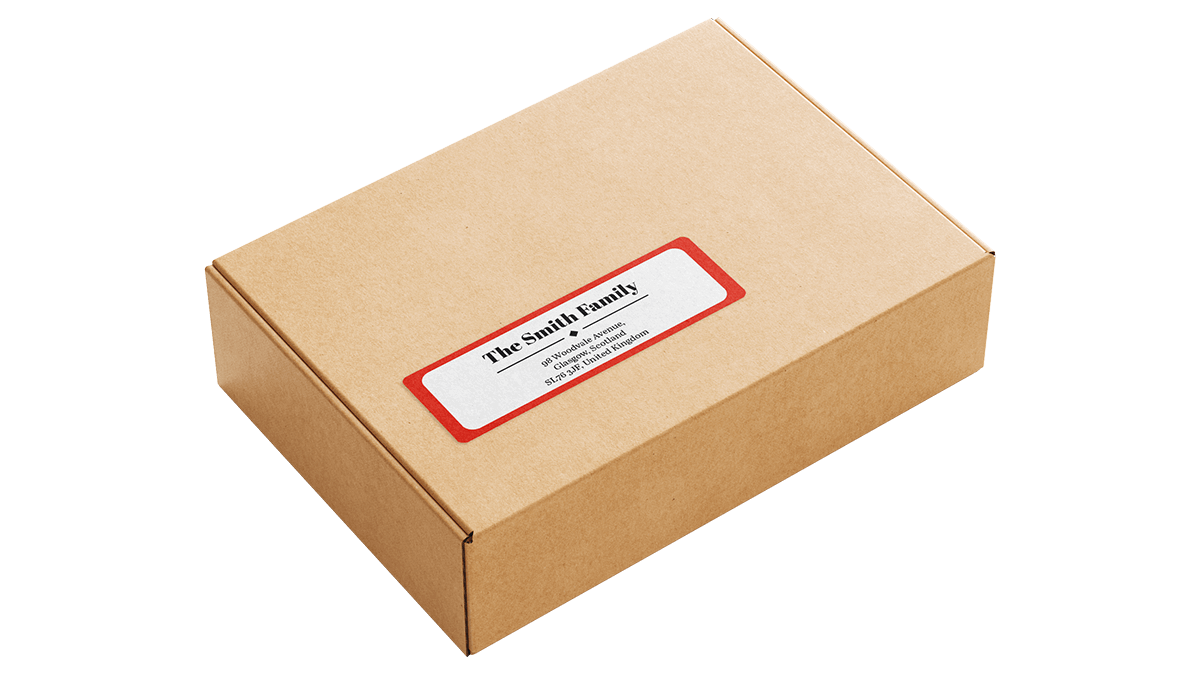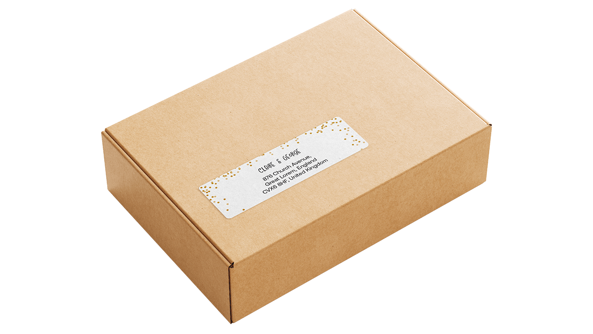 Return Address Labels Good adhesion to cardboard and paper surfaces. Paper sticker with a good 'all round’ permanent adhesive. White, woodfree machine coated gloss with aqueous acrylic emulsion adhesive.