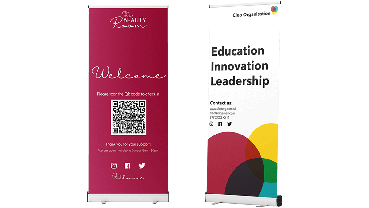 The stand comes complete with printed a graphic and free carry bag weighing around 3kg each. The visible area of the graphic on these stands are 800mm (width) x 2000mm (height). We recommend downloading our Roll Up Banner Template and placing your artwork onto it. Remember to add a safe area and bleed to your artwork as you don't want any of your message 'cut off' at the bottom. Leave at least 70mm of space at the bottom of your artwork to be safe.