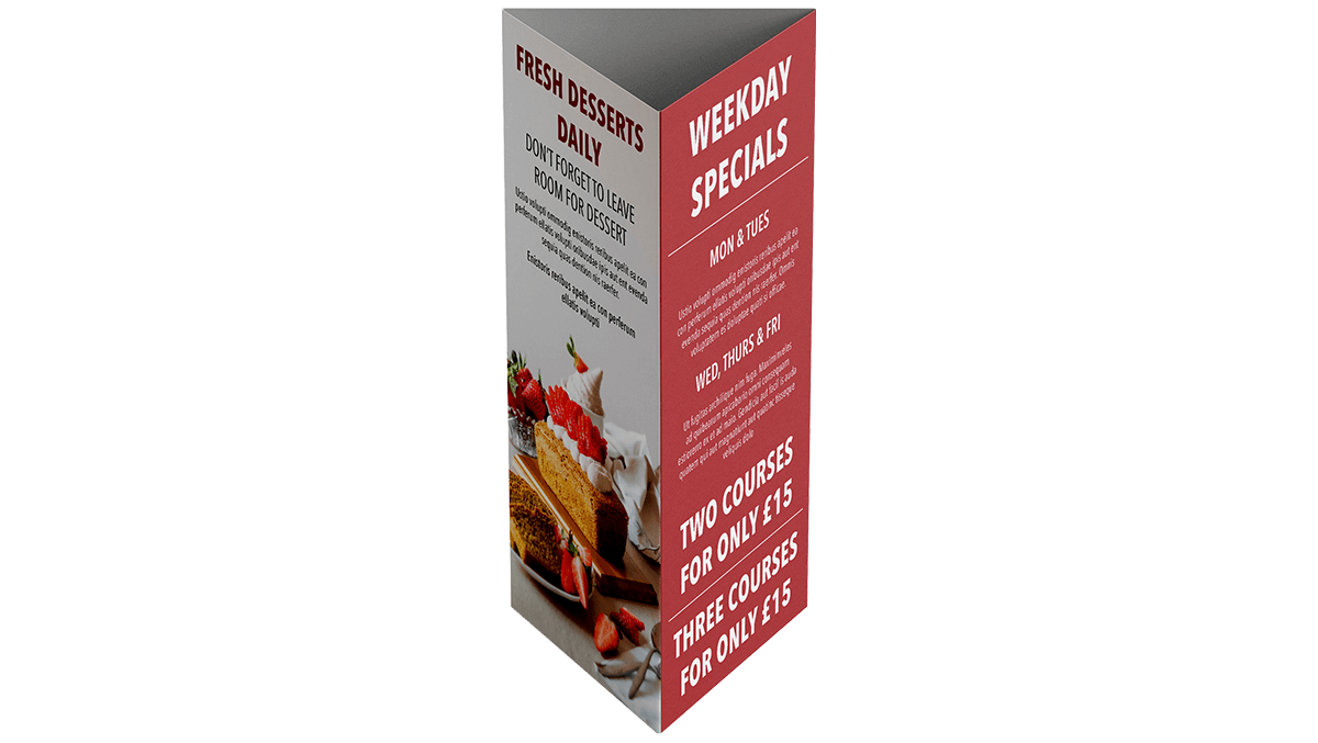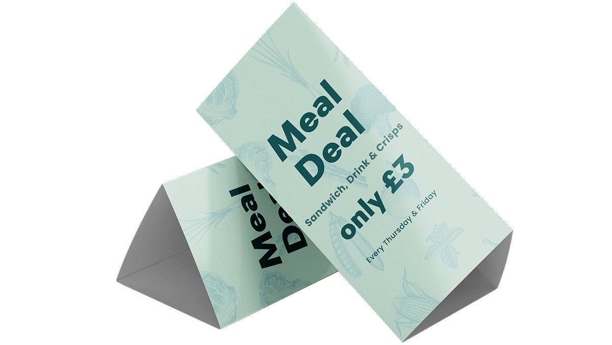 Let your customers jazz up their tables with our free-standing, beautifully designed table talkers.