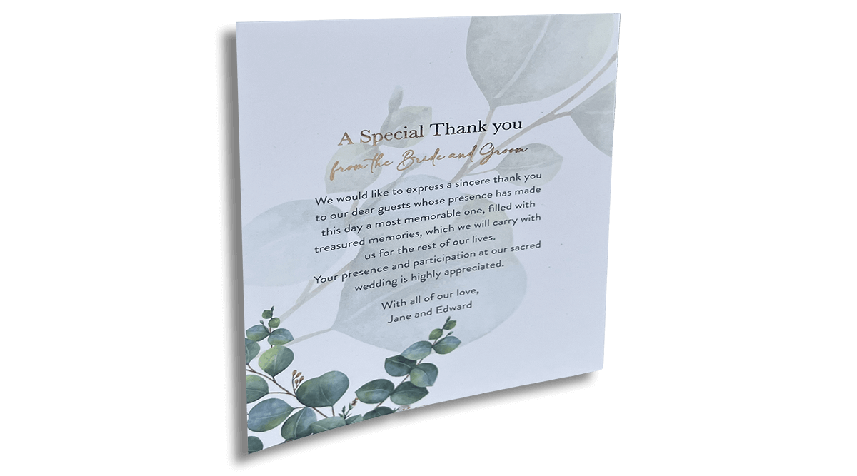 Give your customers the gift of appreciation with our high-quality wedding Thank You Cards.