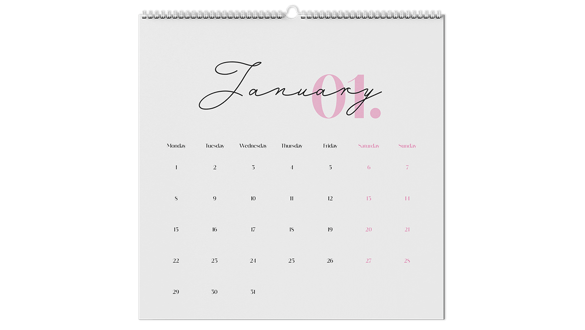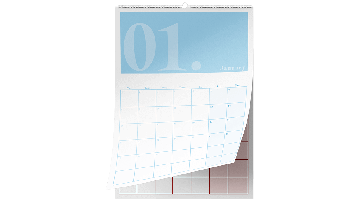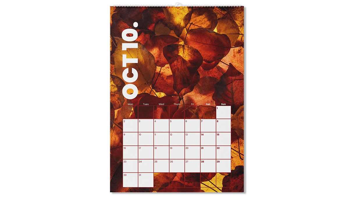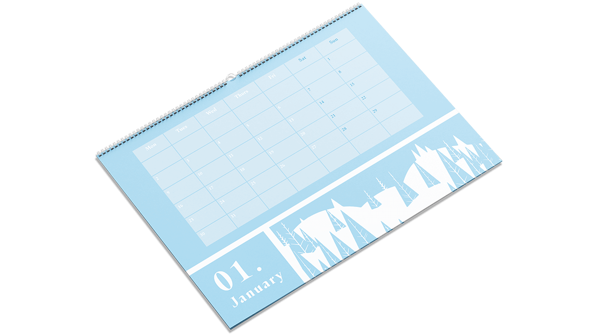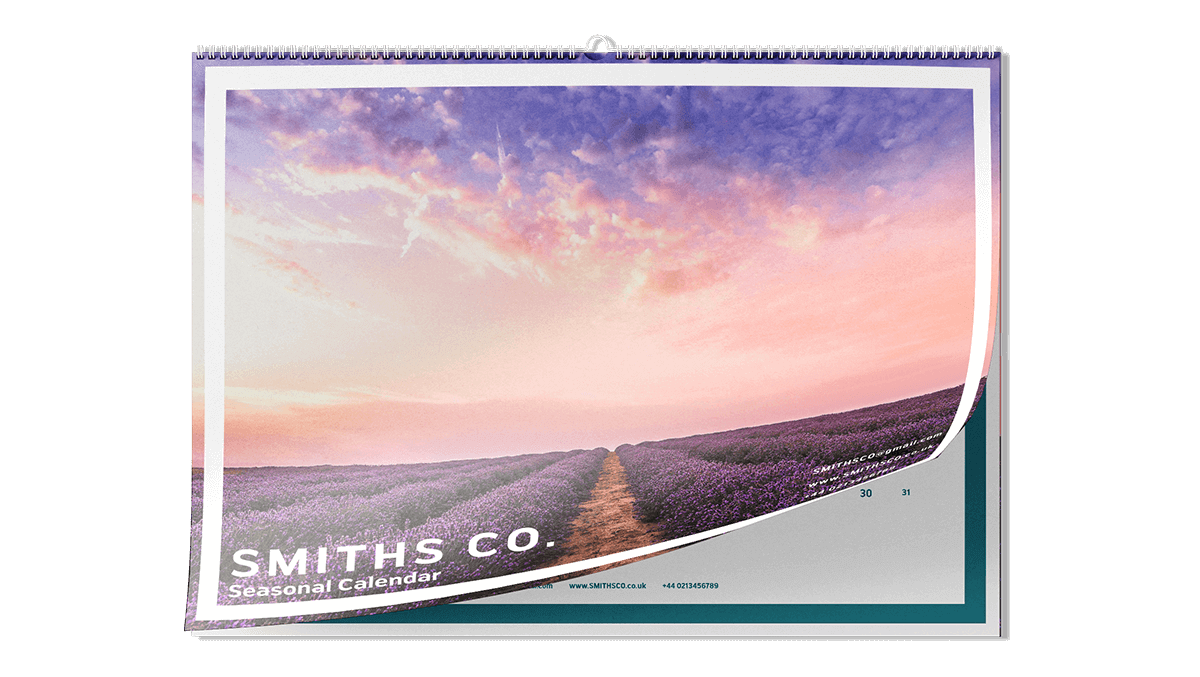 Print vibrant full colour wiro bound wall hanging calendars and choose between single-sided or double-sided printing options.