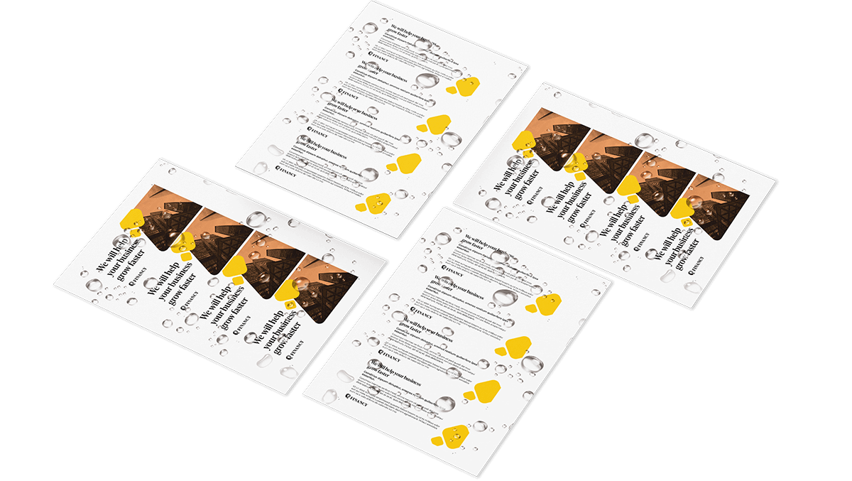 We can provide you with flat unfinished sheets, with your design printed on SRA3+ waterproof materials, ideal for trade printing. This has the benefit of saving you money if you want to trim the paper yourself. If you are a trade print customer, or you have your own finishing equipment, you may wish to take advantage of our available capacity to produce untrimmed printed sheets, which you can finish to your own specifications.