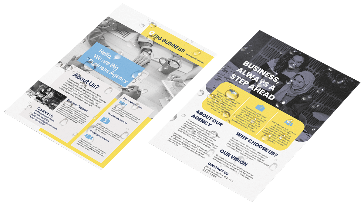 High quality waterproof leaflet and flyer printing. Whether you are advertising your business, product or event, our range of full colour waterproof leaflets will make sure that you grab attention for all the right reasons. These products are perfect for advertising or handing out important information if you run a water sports centre or mountaineering club where paper products would not hold up to the rigorous demands of nature.