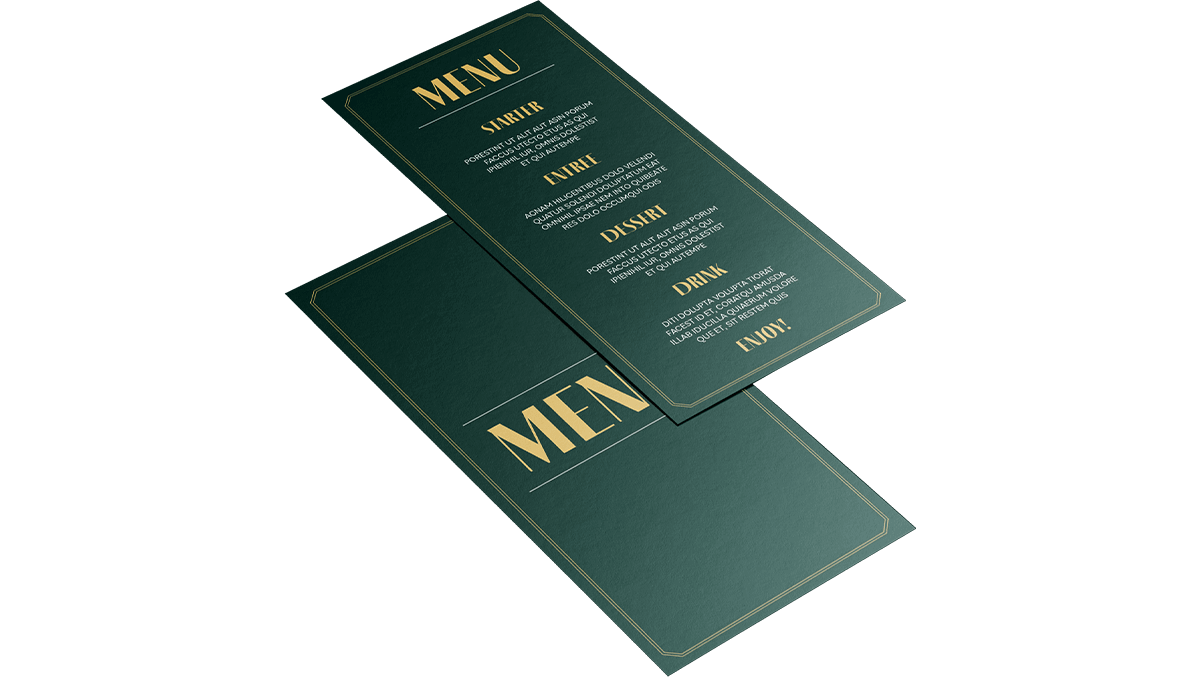 Our Flat Wedding Menus and Folded Wedding Menus will be a real talking point at the dinner table. You can customise to your customers’ exact likening with the likes of luxury paper options, professional finishes and original artwork.