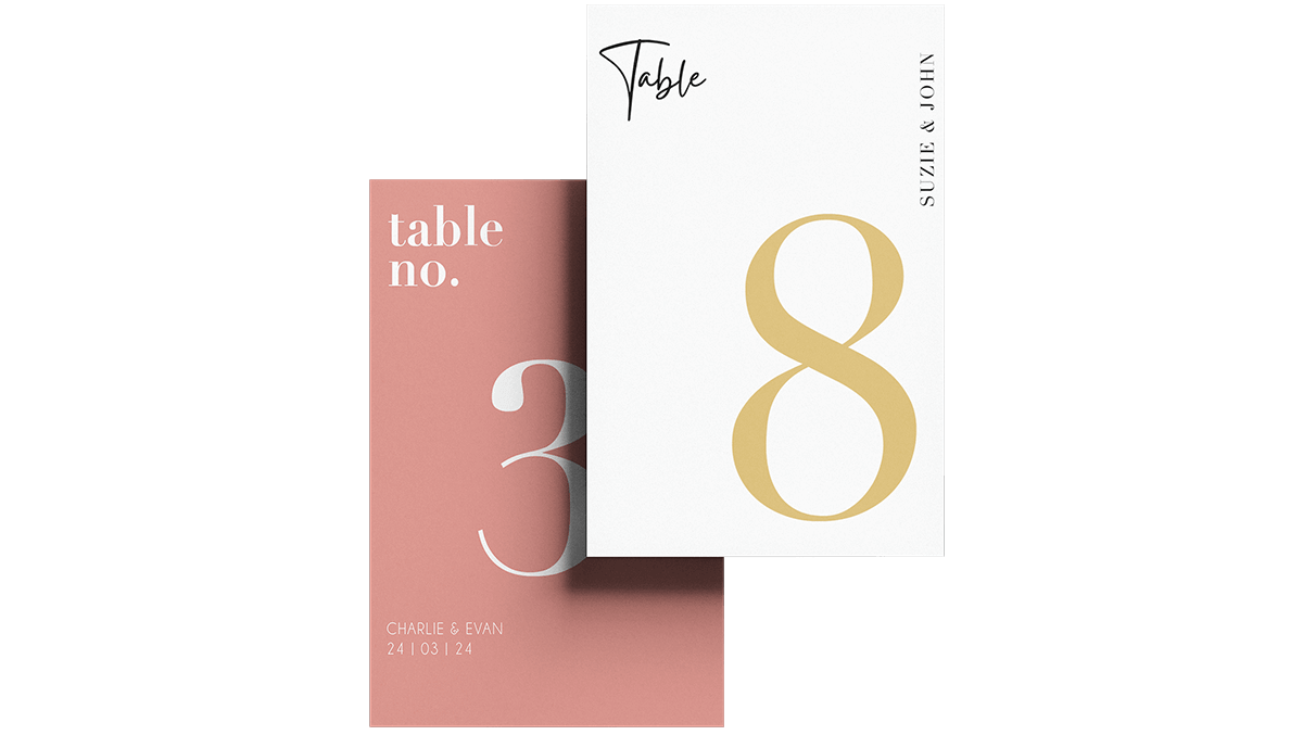 Trade customers can customise our wedding table names to their exact liking. Luxury papers, professional finishes and original artwork are just some of the ways in which we help you to enhance the final product.