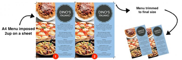 When printing your artwork we print onto sheets that are larger in size. We then trim it down to the correct size using the crop marks as a guide. For example we can place 2 A4 sheets side by side onto an SRA3 sheet, this is also know as imposing the A4 2up on a sheet. After we have printed the imposed job we know where to cut the sheet because the crop marks tell us where to cut to make your finished job.